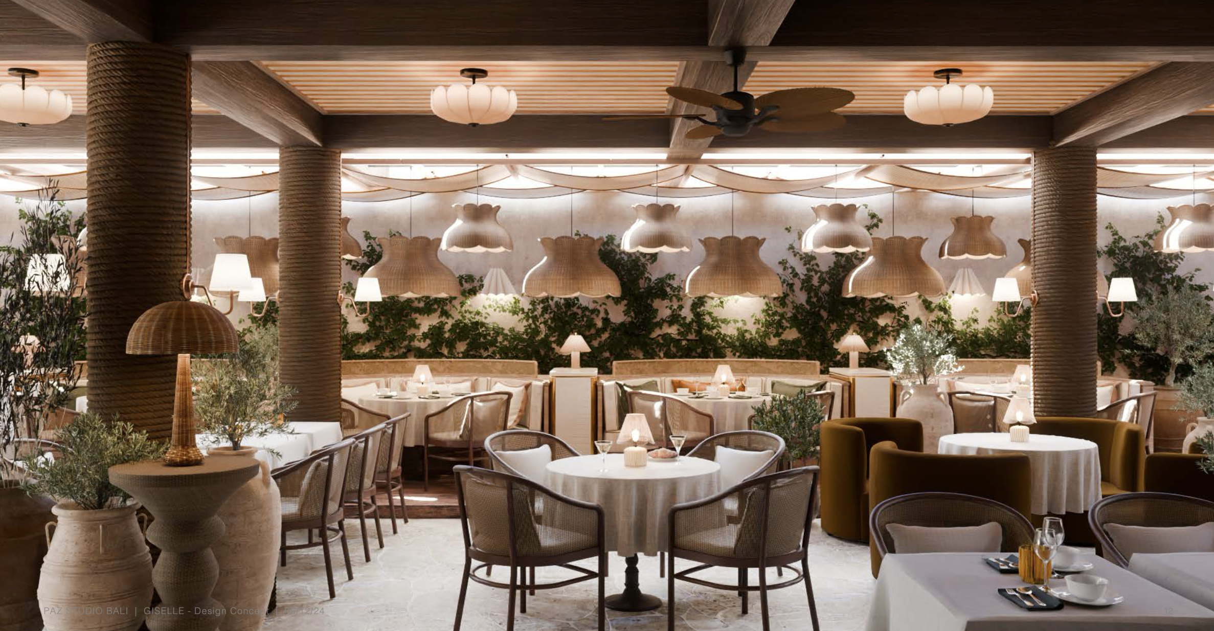 And then comes the best part: sunset. This is when Canggu comes alive with open-air restaurants and cocktail bars that feel purpose-built for aperitivo hour. We designed Giselle’s courtyard to be exactly that — a space to transition from day to night, cool off with a handcrafted cocktail, and catch the breeze drifting through the upstairs terrace. Order a spritz, sink into your chair, and watch the sky burn coral before it fades to indigo.