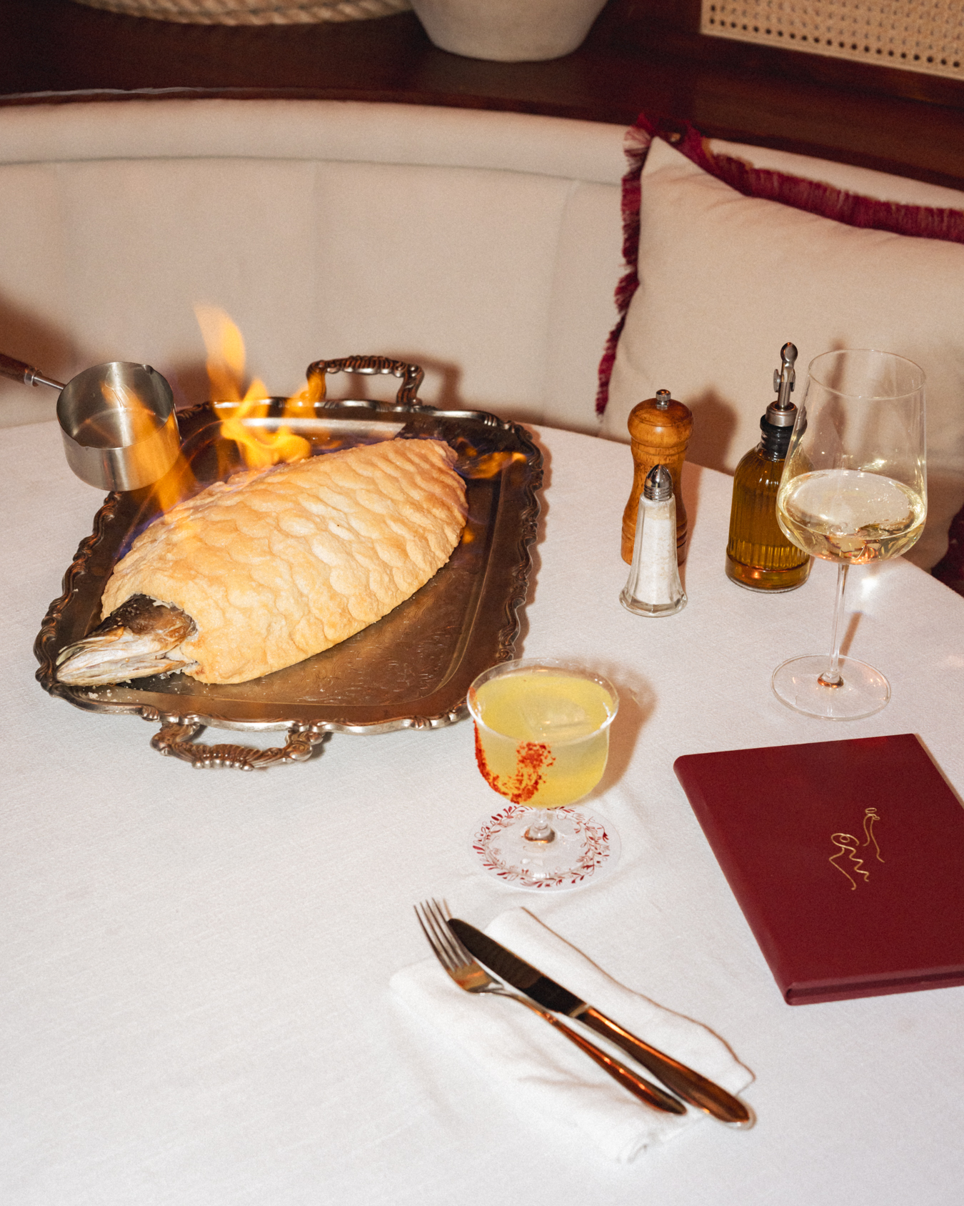 Giselle’s drinks programme is curated to complement the coastal, Mediterranean flavours of the food. The wine list spans crisp mineral whites, ideal alongside crudo and seafood, through to structured reds that hold their own with lamb and octopus. The cocktail menu draws on Mediterranean botanicals and citrus, and the aperitif selection is a particular highlight for those who want to start the evening properly.